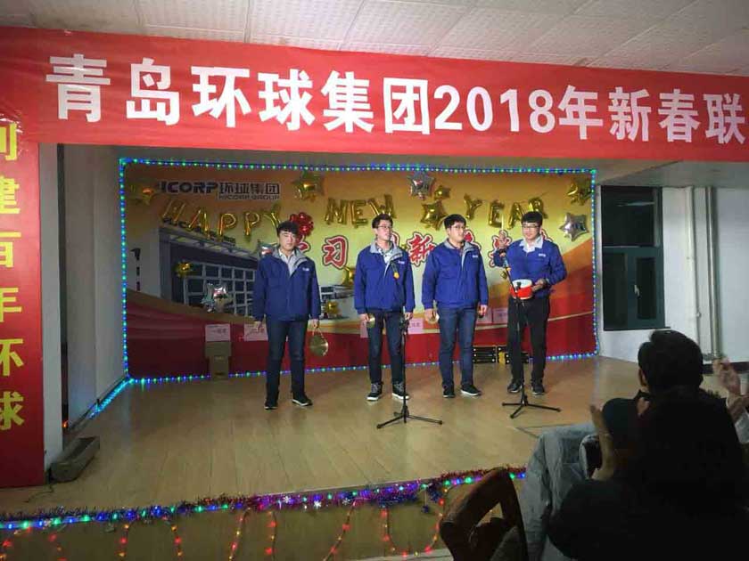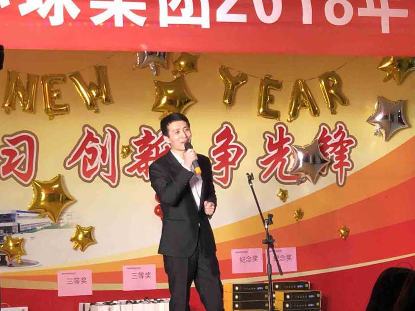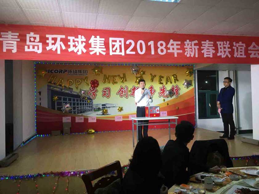 環(huán)球家宴在振奮人心的鞭炮聲中拉開了帷幕,孫總宣布晚會開始,會上紡機公司2017年度銷售狀元、集團標兵代表徐鵬翔,工程裝備公司2017年度銷售狀元、先進代表楊廷波,青島汽配2017年度集團標兵王偉分別發(fā)言,代表營銷團隊、生產團隊對集團的培養(yǎng)和鼓勵表示感謝,暢談了入職環(huán)球,成為環(huán)球人一路走來的收獲和感受,同時號召全體環(huán)球人在2018年有新目標,有新行動,有新作為,為了“引領行業(yè)先鋒,創(chuàng)建百年環(huán)球”的歷史使命,全力以赴,再創(chuàng)輝煌。